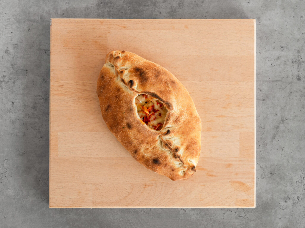 Tomatsauce, ost, kebab, kylling, peberfrugt, løg, jalapenos chilisauce og dressing.